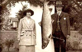 I knew that, as a woman, I had a better chance than most of catching a fishie. Ballantine is not the only woman to hold a salmon record: two years after her big fish was gaffed, Miss Clementina Morison took, on a “Brown Wing Killer” fly (Ballantine’s was with a spinning bait), a 61lb salmon. And in 1923, the heaviest spring fish (59.5lbs) was caught by a Doreen Davey from the river Wye. Evidently, the twenties were a good time for big fish. The reason why so many women hold records? Some say that the biggest fish are male and male fish are attracted to the pheromones from female anglers (salmon have a very sensitive olfactory system – it is partly smell that leads then back to the very pool they were born to spawn again). But female anglers say this is a theory put around by men to demean them when, actually, female anglers are just better.